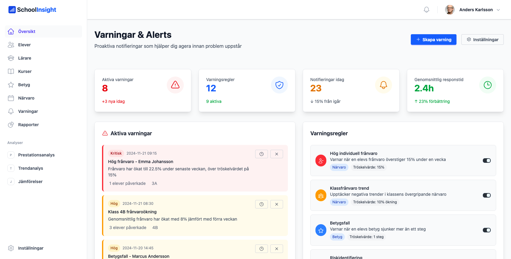 Med hjälp av tydliga visualiseringar och AI-genererade insikter kan ni styra skolan mer strategiskt och effektivt.