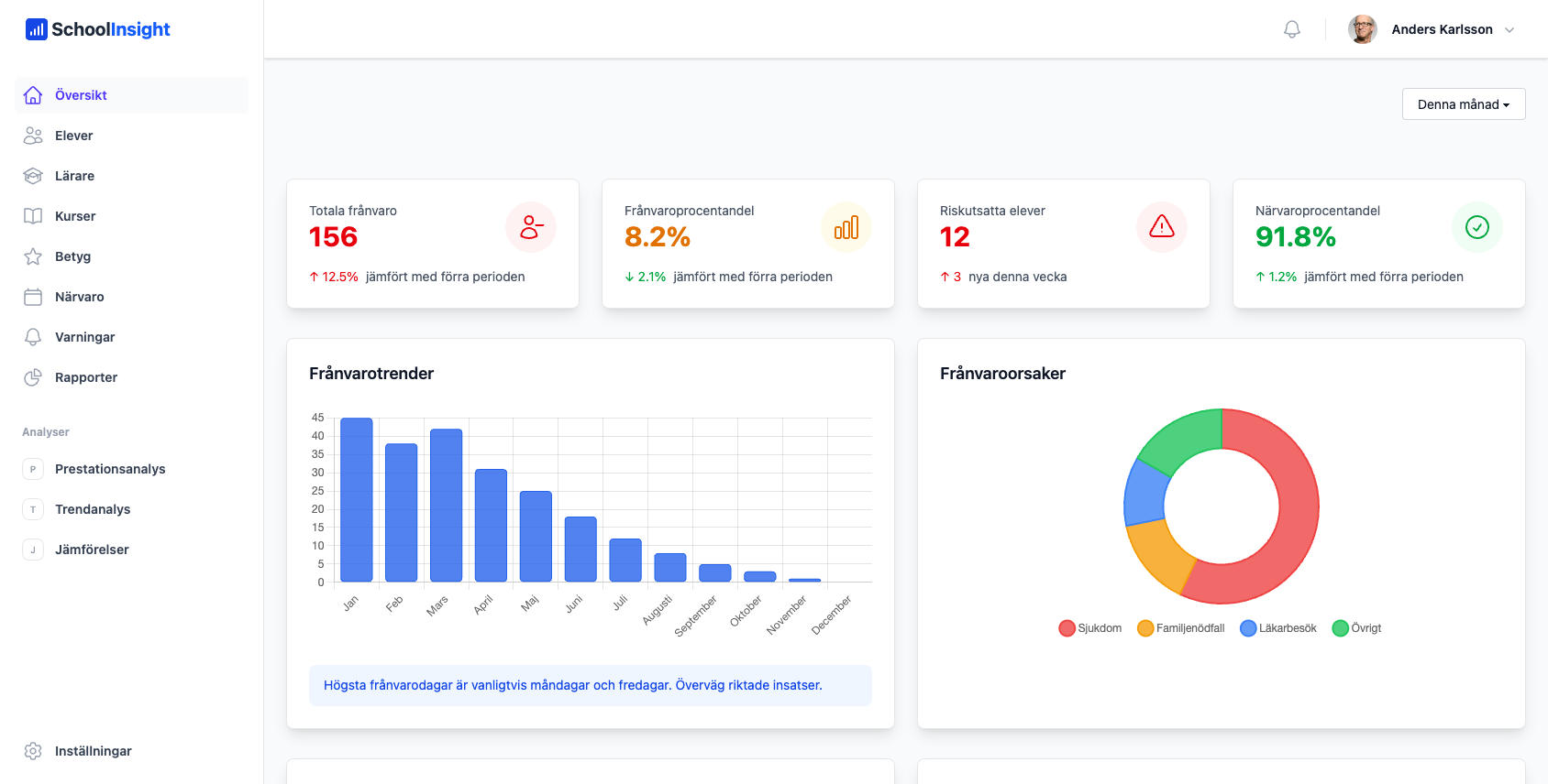 Med hjälp av tydliga visualiseringar och AI-genererade insikter kan ni styra skolan mer strategiskt och effektivt.
